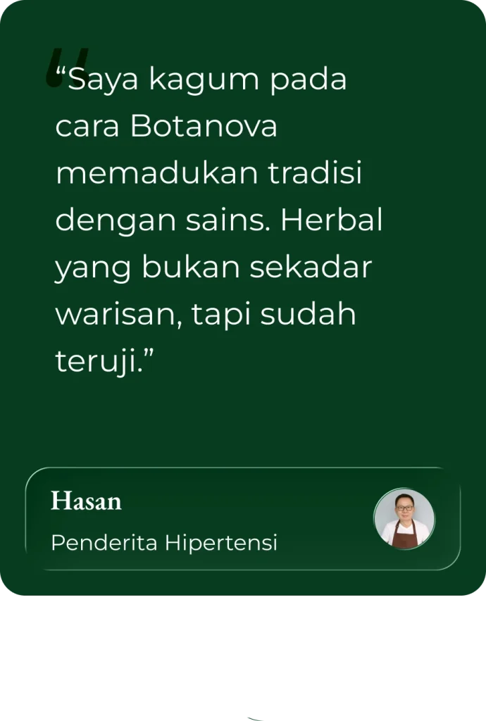 BOTANOVA memadukan warisan herbal Nusantara dengan riset modern agar manfaatnya tetap hidup dan terbukti dapat menyembuhkan berbagai penyakit.